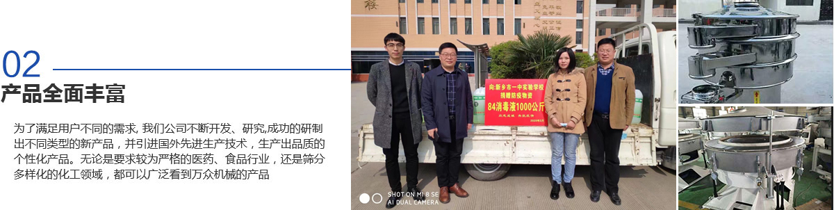 新鄉(xiāng)市萬眾機(jī)械設(shè)備有限公司是生產(chǎn)振動(dòng)機(jī)械、篩分設(shè)備和過濾設(shè)備的專業(yè)廠家之一,擁有生產(chǎn)設(shè)備、雄厚的技術(shù)力量、完善的檢測手段、嚴(yán)格的管理體系。是河南省的商標(biāo)之一,被河南省科學(xué)技術(shù)廳頒定為高新技術(shù)企業(yè),為新鄉(xiāng)市“守合同重信用企業(yè)“。質(zhì)量信得過產(chǎn)品、質(zhì)量服務(wù)消費(fèi)者滿意企業(yè)、合格產(chǎn)品等榮譽(yù)稱號(hào)。擁有自主進(jìn)出口經(jīng)營權(quán),產(chǎn)品遍布各地,并遠(yuǎn)銷北美、西歐及東南亞等地區(qū)。